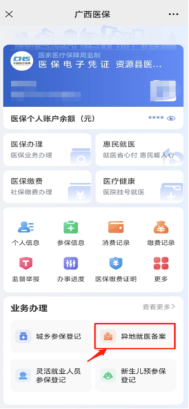 微信搜索“广西医保”并关注,根据自身实际情况选择相应服务事项办理备案。