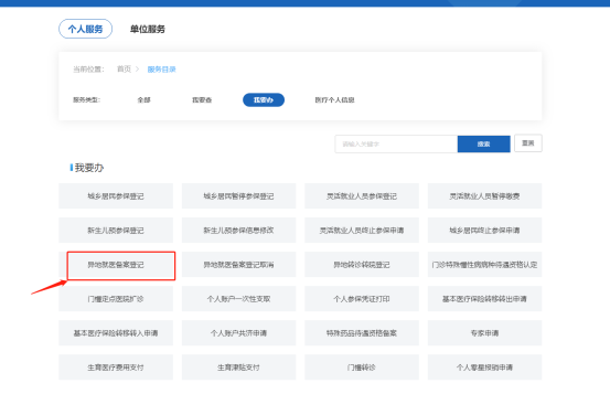 第二步:点击异地就医备案登记,进行备案。