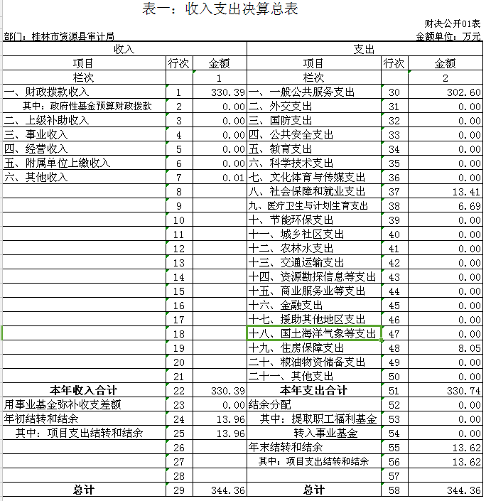 表一:收入支出决算总表