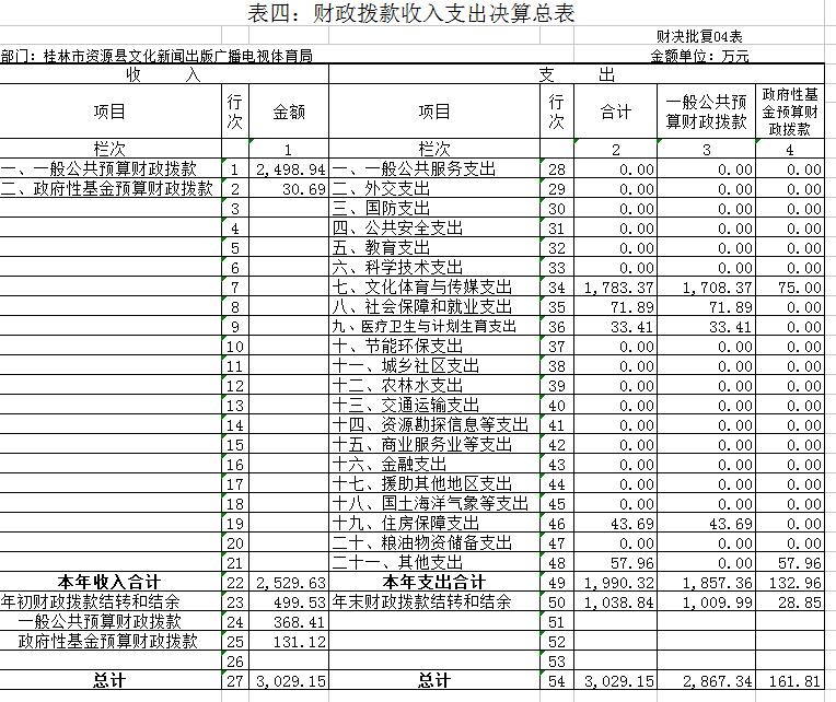 第二部分:资源县文化新闻出版广播电视体育局2016年部门决算报表