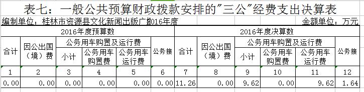 表七:一般公共预算财政拨款安排的“三公”经费支出决算表