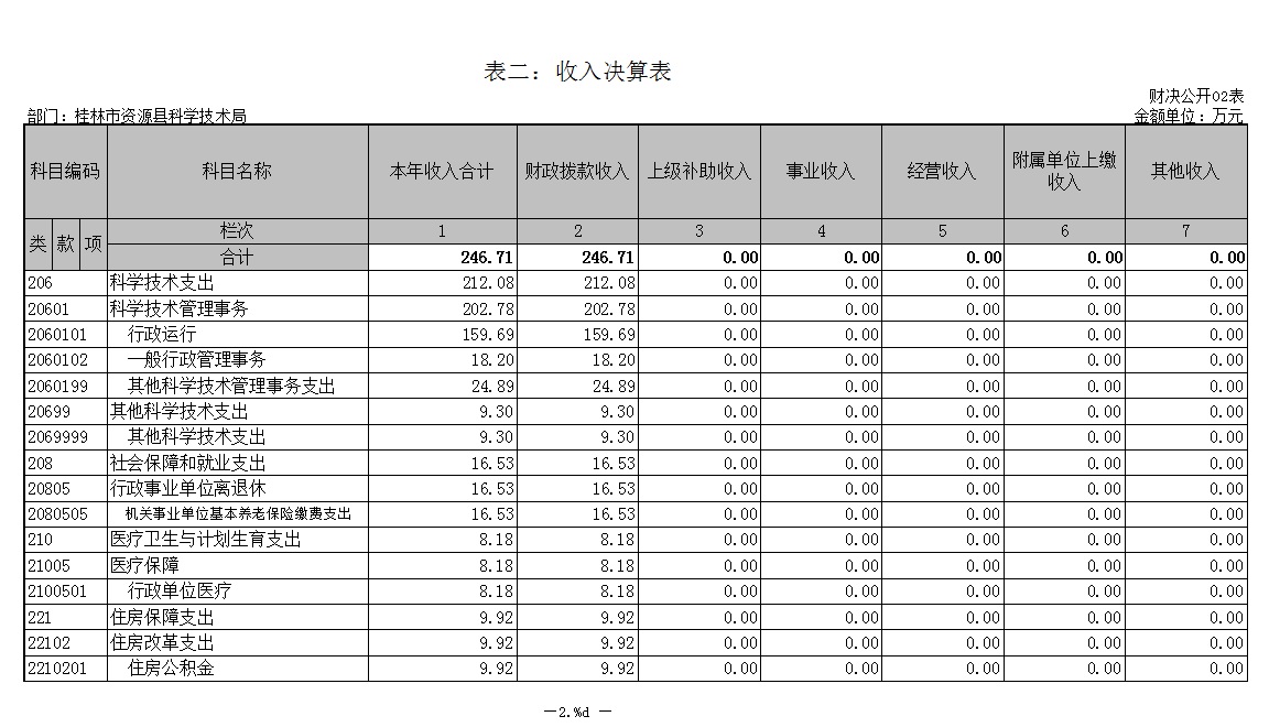 数据以万元为单位,并保留两位小数,因此,根据部门决算报表以元为单位自动生成的少量公开数据会存在进位尾差。