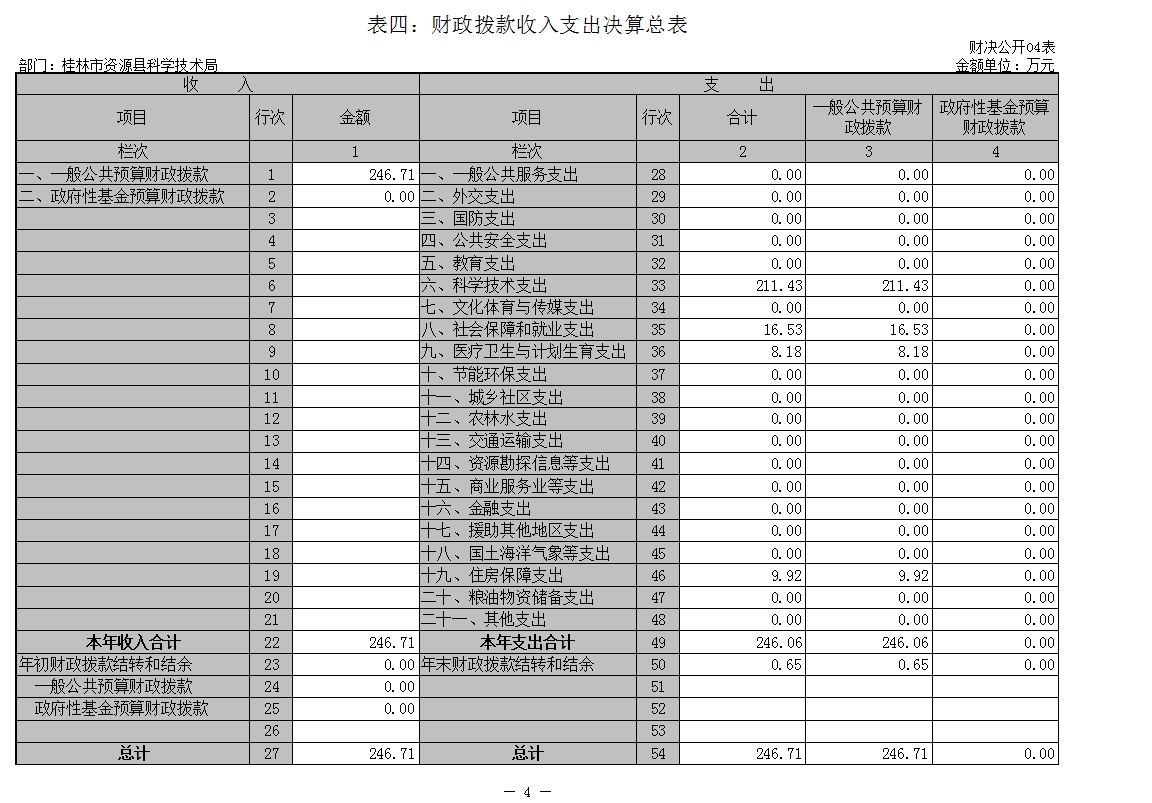 表四:财政拨款收入支出决算总表