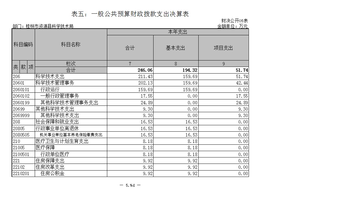 表五:一般公共预算财政拨款支出决算表
