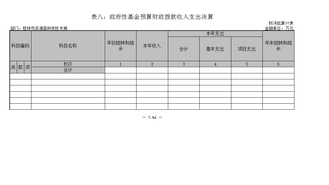 表八:政府性基金预算财政拨款收入支出决算表
