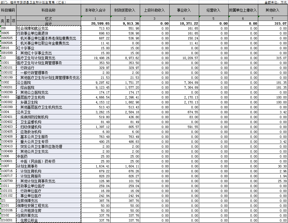 2017年度收、支总计22914.93万元。与2016年相比,收、支总计各减少6176.19、9475.05 万元,减23%、32.18 %。主要原因是公立医院及乡镇卫生院的基建项目完工。收入方面,本年收入20599.65万元,用事业基金弥补收支差额108.97万元,年初结转结余2206.32万元;支出方面,本年支出19963.81万元,结余分配491.51万元,年末结转结余2459.61 万元。