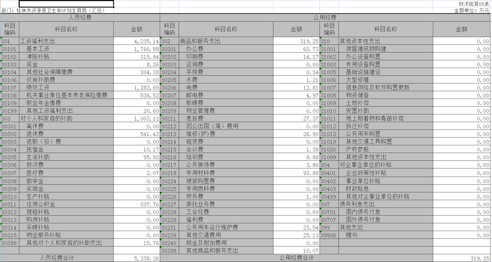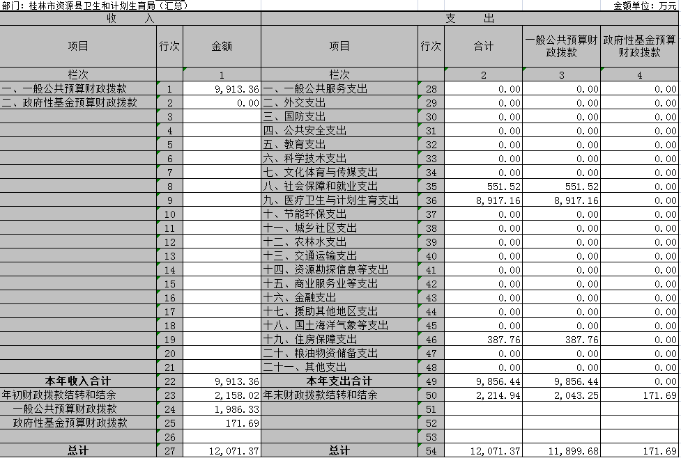 表一:收入支出决算总表 单位:万元 |