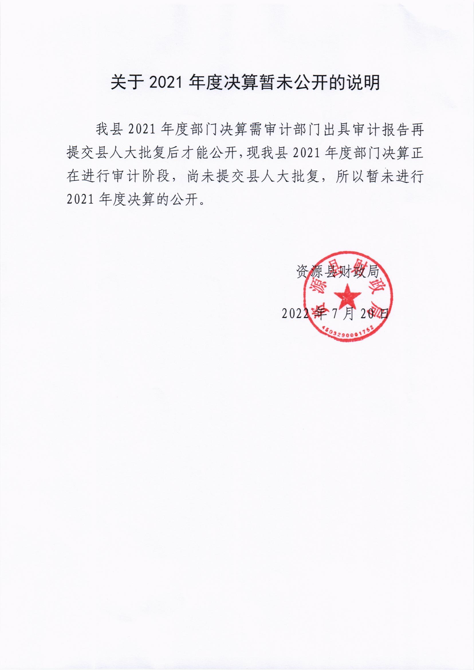 关于2021年度决算暂未公开的说明