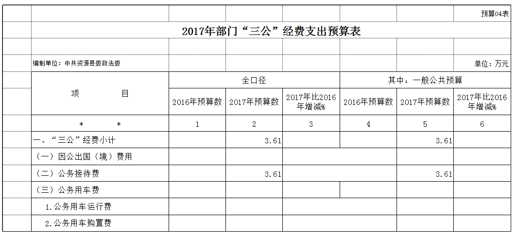 (二)2017年部门一般公共财政预算安排 “三公”经费预算合计3.61万元,比上年预算减少1.43万元,下降28.37 %。其中: