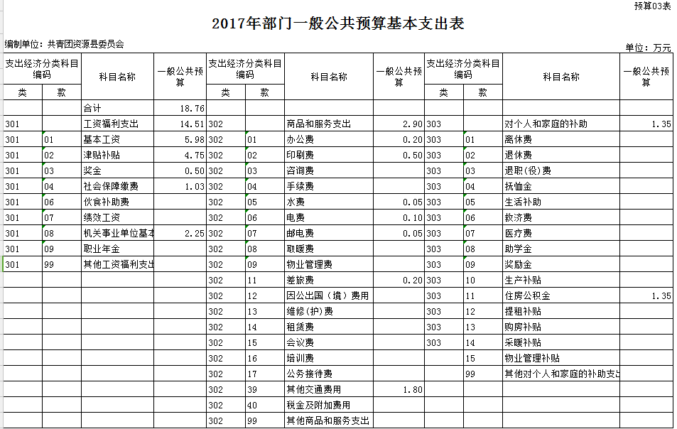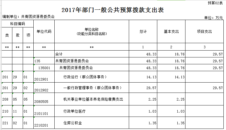 二、资源县团委2017年一般公共预算财政拨款预算情况(数据来源附表2)