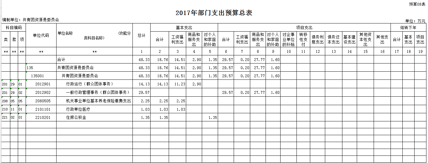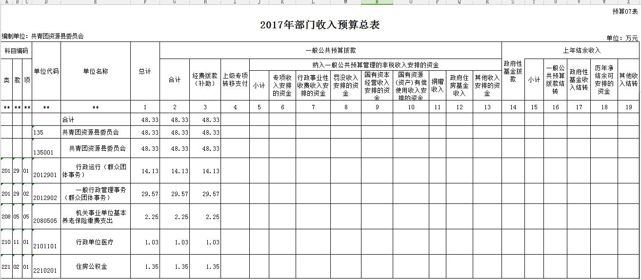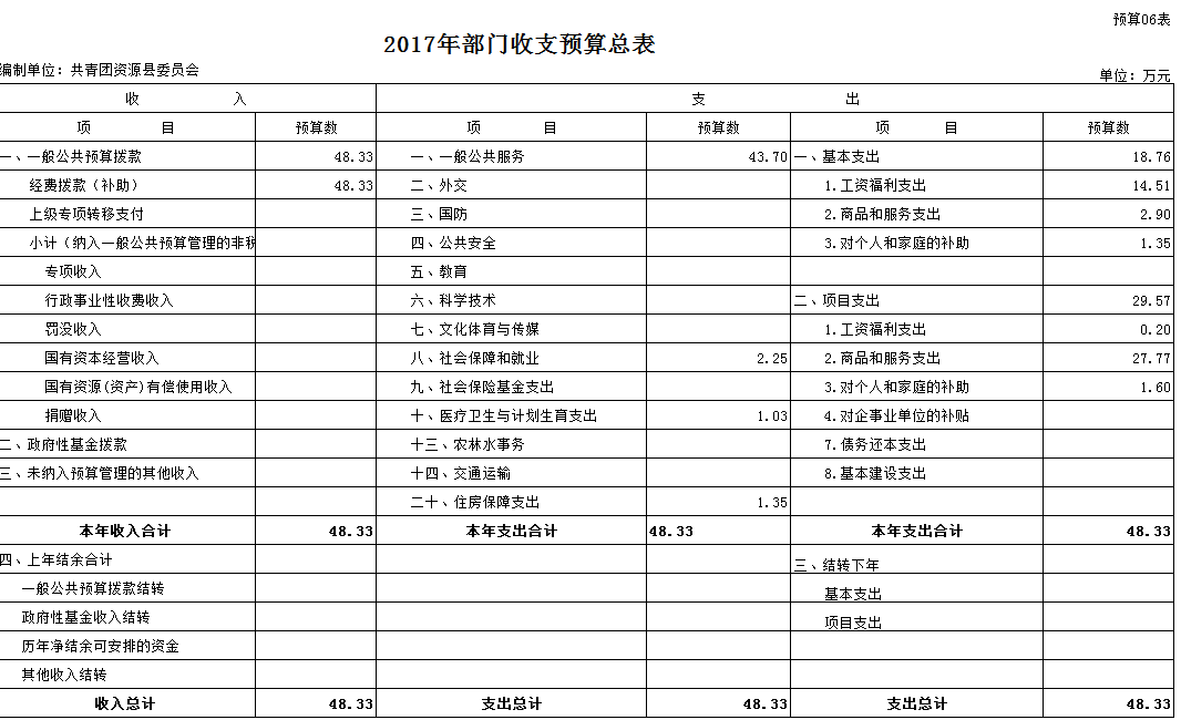 一、资源县团委2017年财政拨款收支预算总体情况(数据来源附表1)