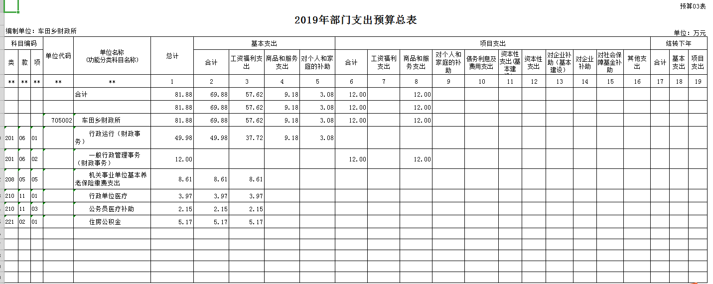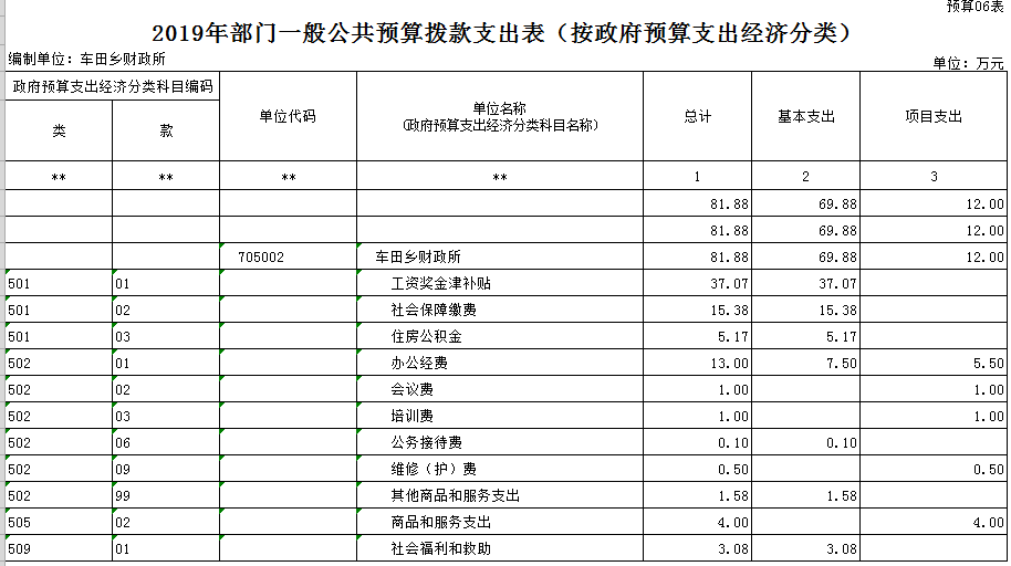 第二部分:资源县财政局车田财政所2019年部门预算报表