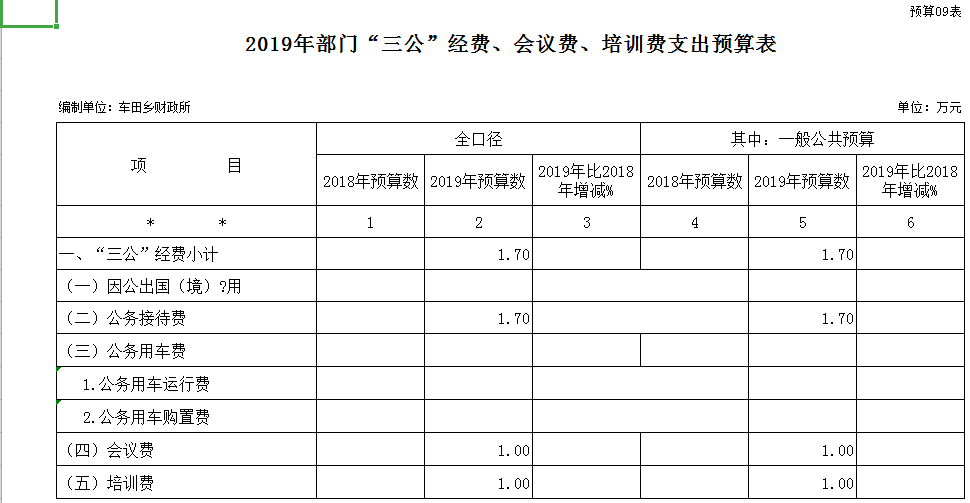 编制单位:车田乡财政所 |