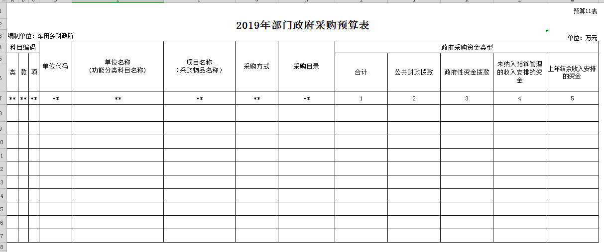 十一、政府采购预算表