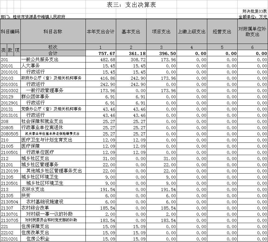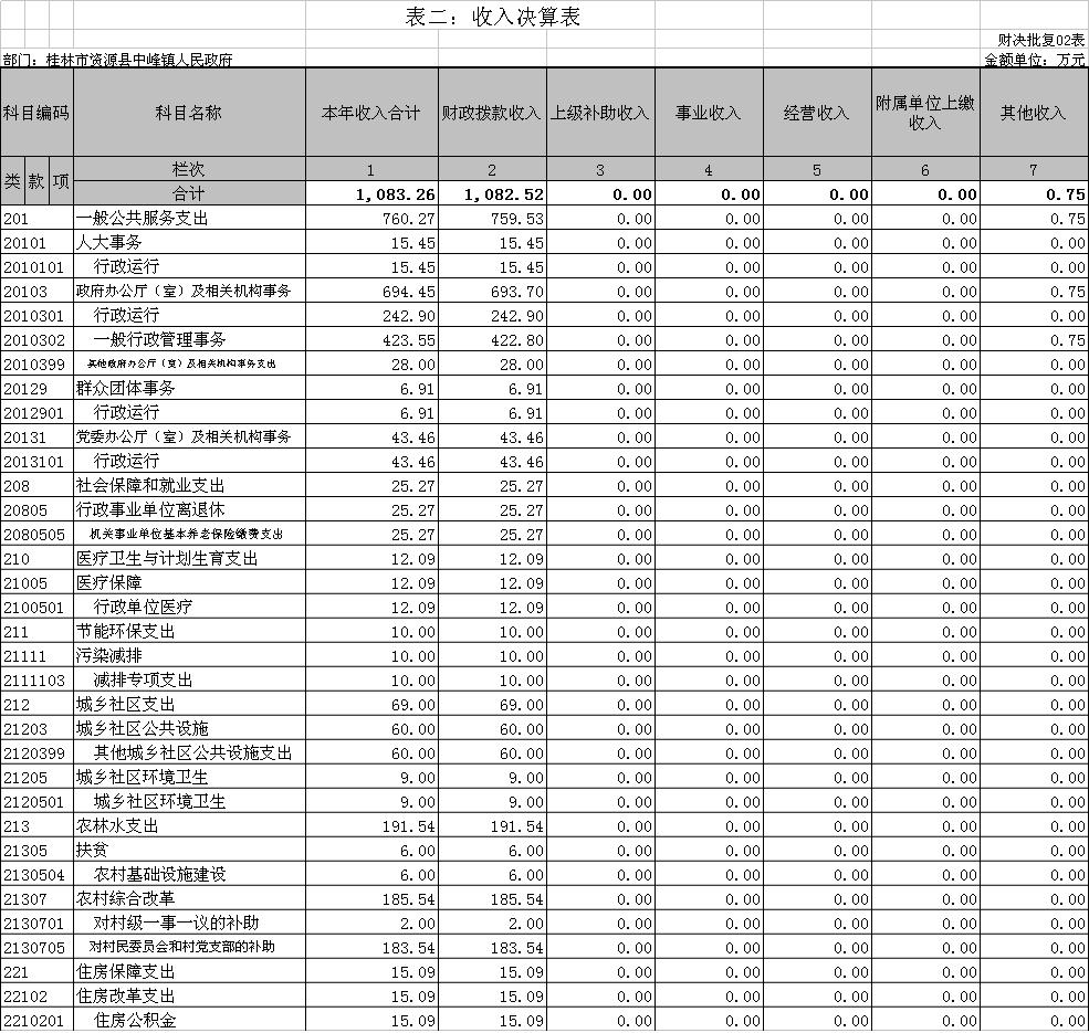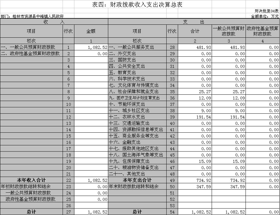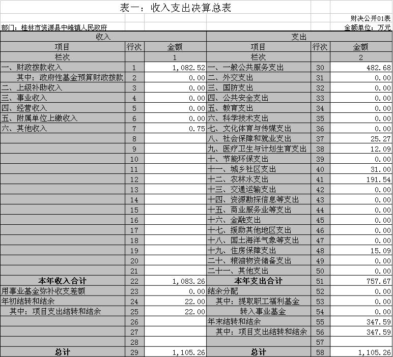 纳入本套部门决算汇编范围的单位共1个。包括:资源县中峰镇人民政府本级。