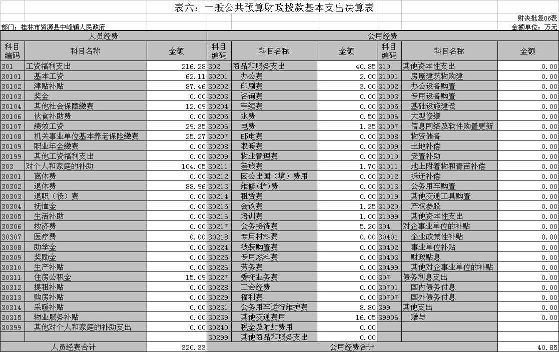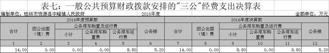 第二部分:资源县中峰镇人民政府2016年部门决算报表