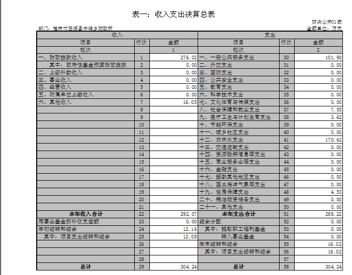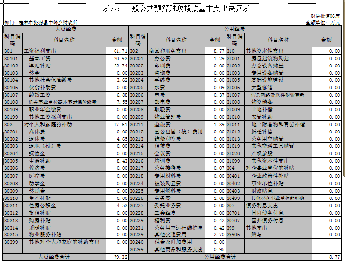 第二部分: 资源县财政局中峰财政所2016年部门决算报表