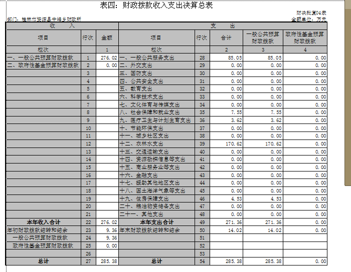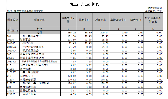 《收入决算表》、《支出决算表》、《一般公共预算财政拨款支出决算表》和《政府性基金预算财政拨款收入支出决算表》应当细化公开到支出功能分类项级科目,《一般公共预算财政拨款基本支出决算表》应当细化公开到经济分类款级科目。由于公开数据以万元为单位,并保留两位小数点,因此,根据部门决算报表以元为单位自动生成的少量公开数据会存在进位尾差。