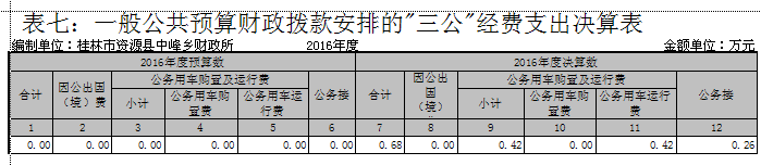表七:一般公共预算财政拨款安排的“三公”经费支出决算表