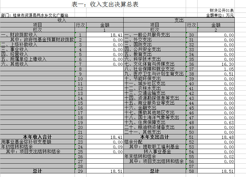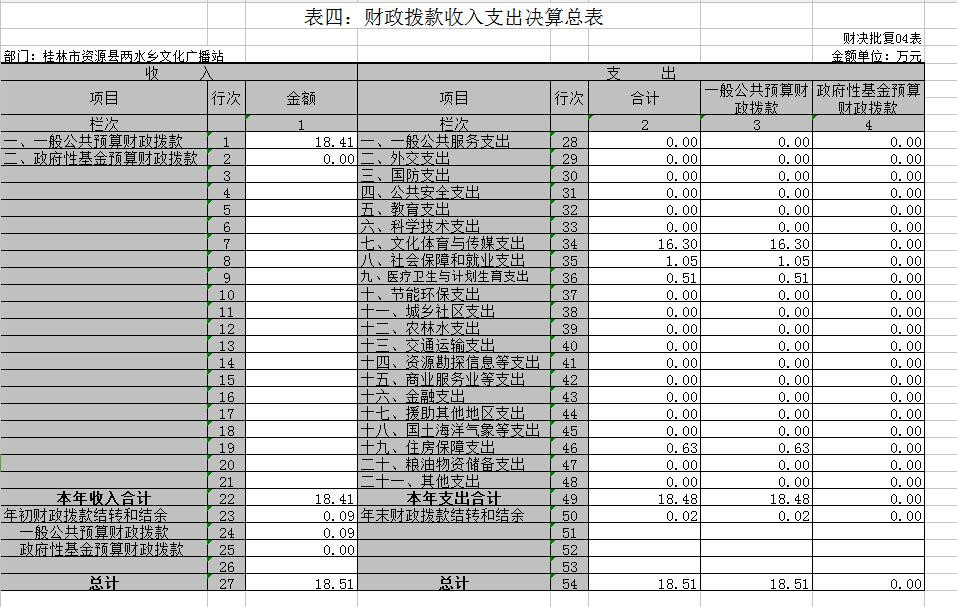 第二部分 桂林市资源县两水乡文化广播站2016年部门决算报表