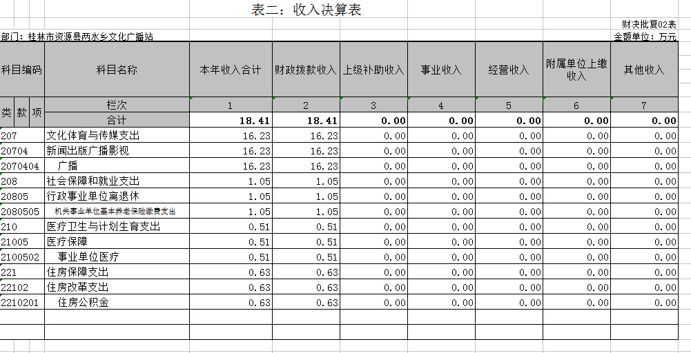 桂林市资源县两水乡文化广播站2016年部门决算