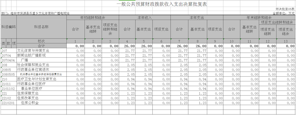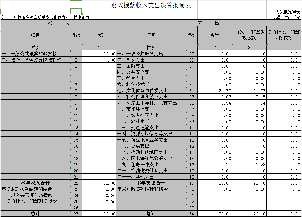 一般公共预算年初预算27.32万元,支出决算为26万元,完成年初预算的95.17%
