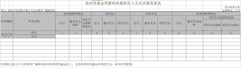 资源县瓜里乡文化广播站设事业单位1个,属于财政核拨事业单位1个。