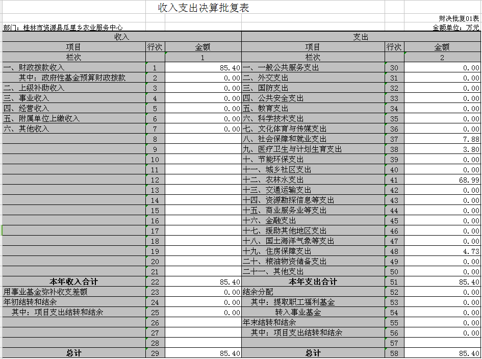 资源县瓜里乡农业服务中心2017年部门决算