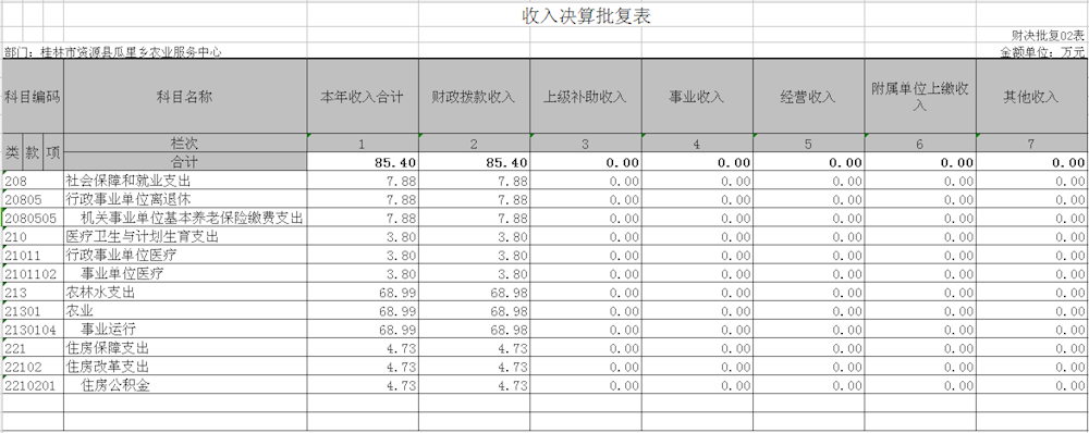 二、收入决算表