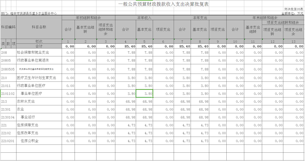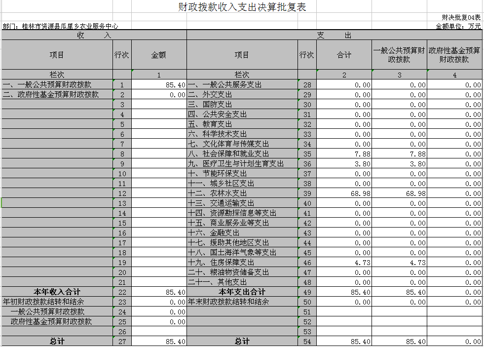 一般公共预算年初预算83.12万元,支出决算为85.4万元,完成年初预算的100%