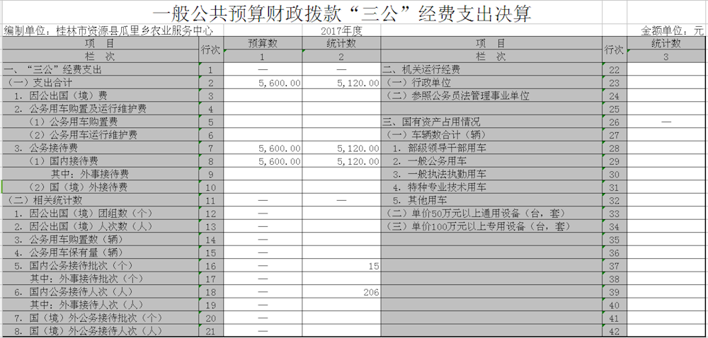 第二部分:资源县瓜里乡农业服务中心2017年部门决算报表