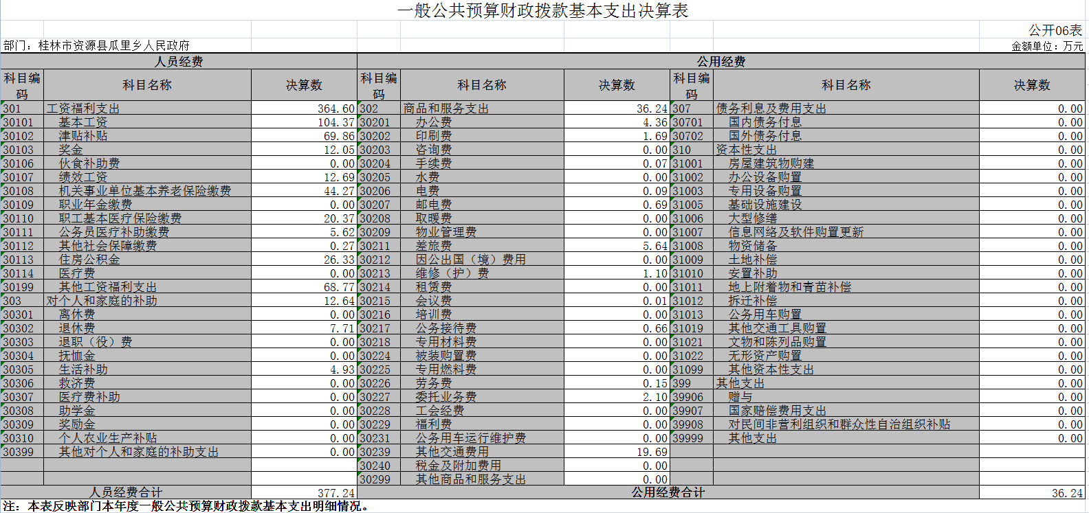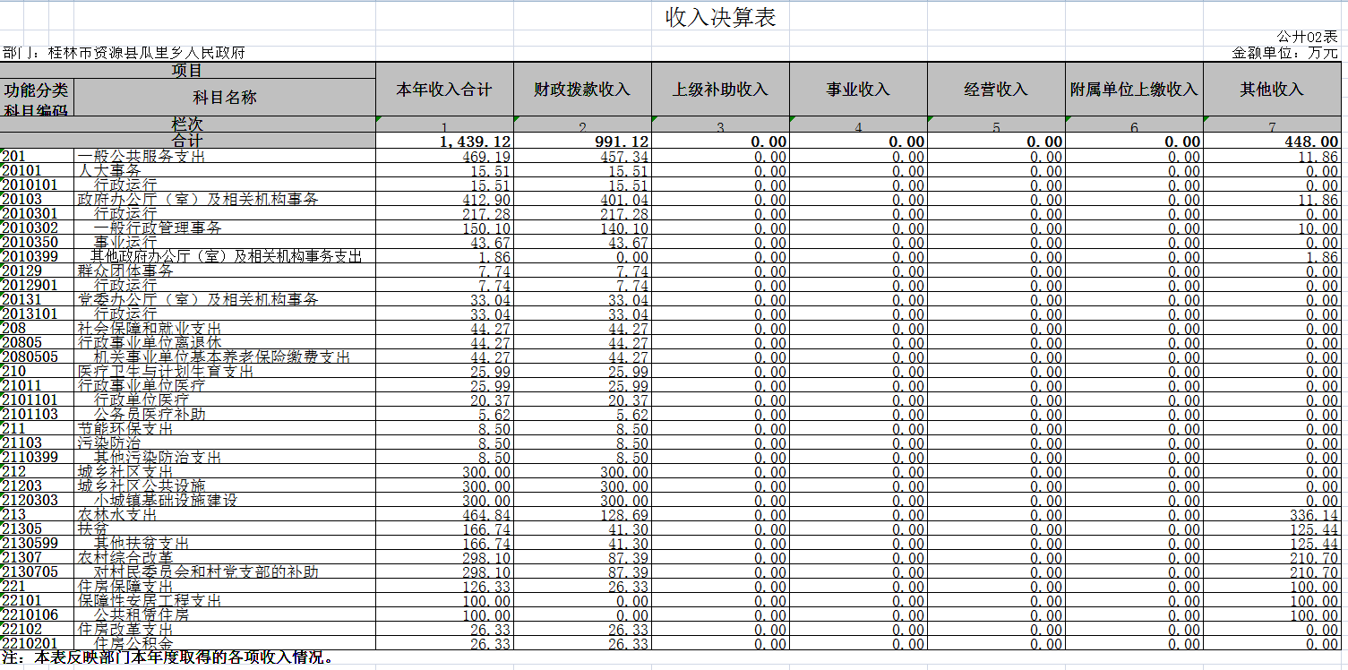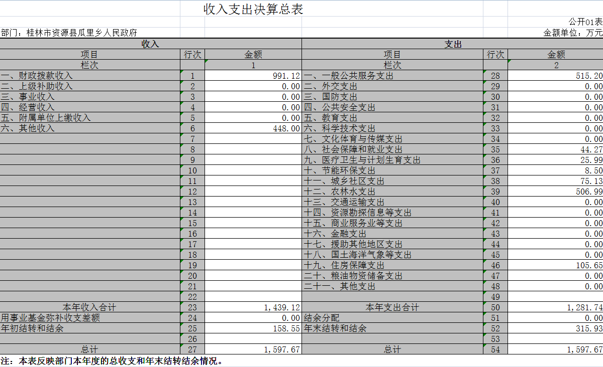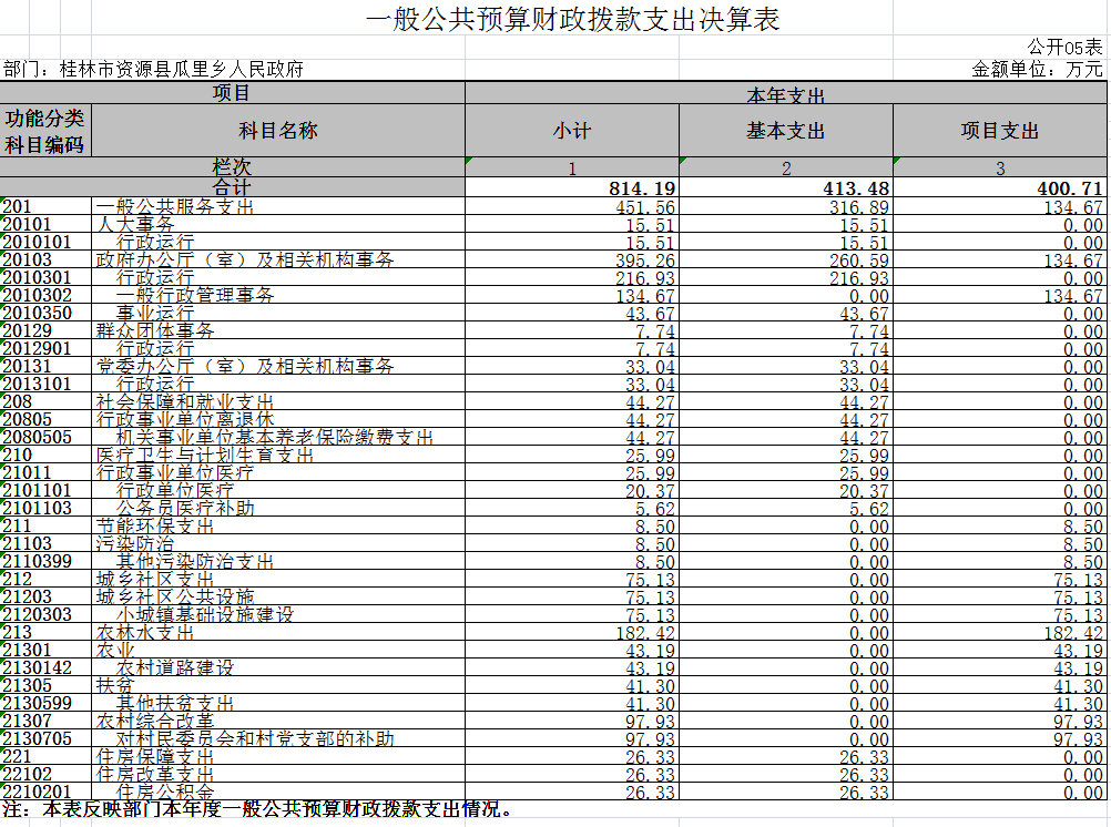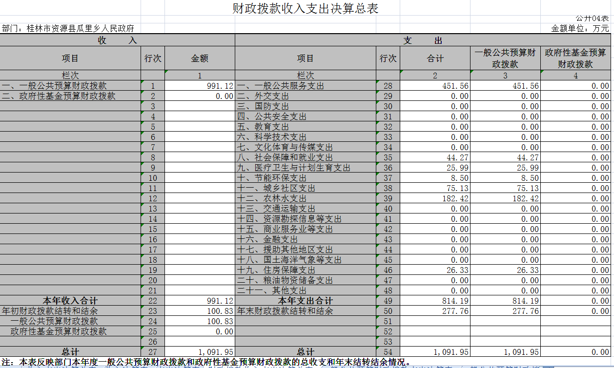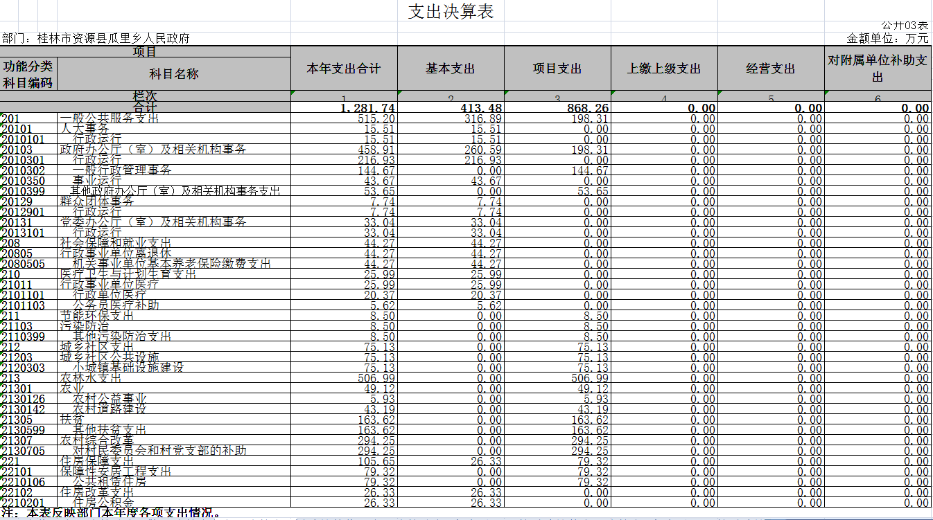 第二部分:资源县瓜里乡人民政府2018年部门决算报表