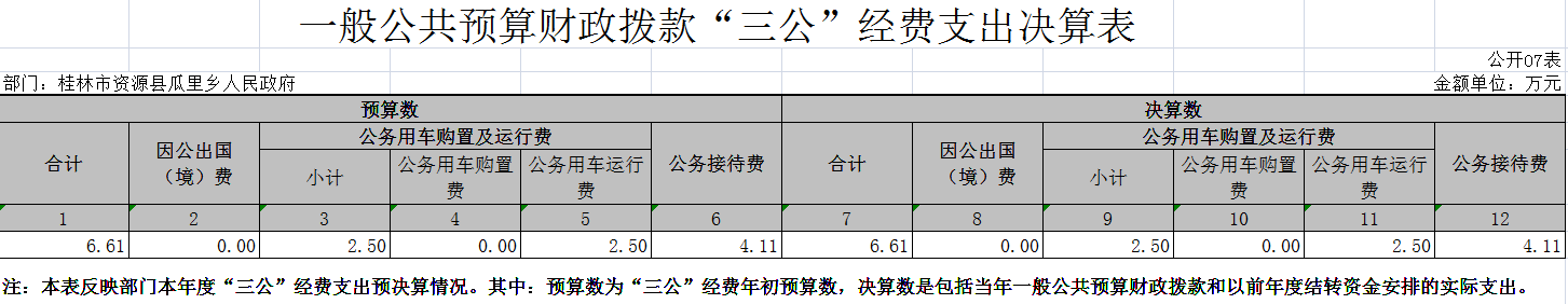 2018年度一般公共预算财政拨款安排的“三公”经费支出6.61万元决算中,因公出国(境)费支出决算0万元;公务用车购置及运行费支出决算2.5万元;公务接待费支出决算4.11万元。