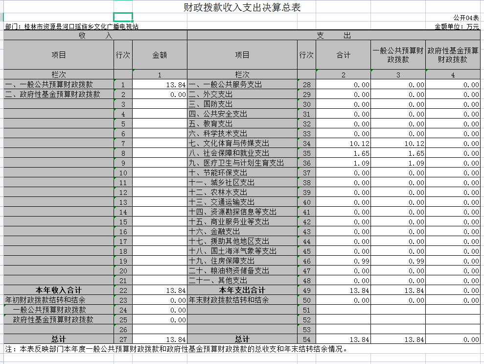 资源县河口瑶族乡文化广播电视站2018年度部门决算