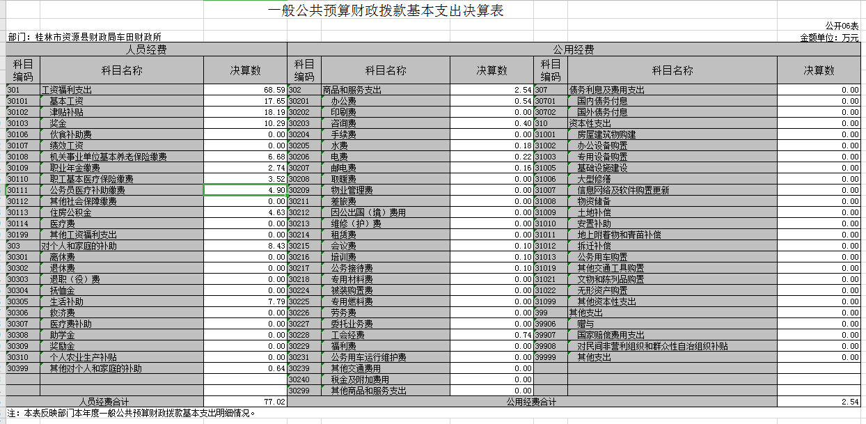 (此部分可另附表格,详见附件:车田财政所2019年度部门决算公开附表)