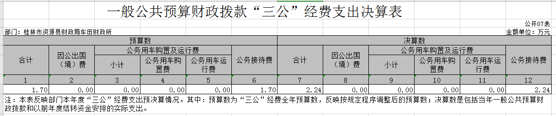 四、“三公”经费:纳入桂林市财政预决算管理的“三公”经费,是指市本级各部门用财政拨款安排的因公出国(境)费、公务用车购置及运行费和公务接待费。其中,因公出国(境)费反映单位公务出国(境)的国际旅费、国外城市间交通费、住宿费、伙食费、培训费、公杂费等支出;公务用车购置及运行费反映单位公务用车车辆购置支出(含车辆购置税)及租用费、燃料费、维修费、过路过桥费、保险费、安全奖励费用等支出;公务接待费反映单位按规定开支的各类公务接待(含外宾接待)支出。