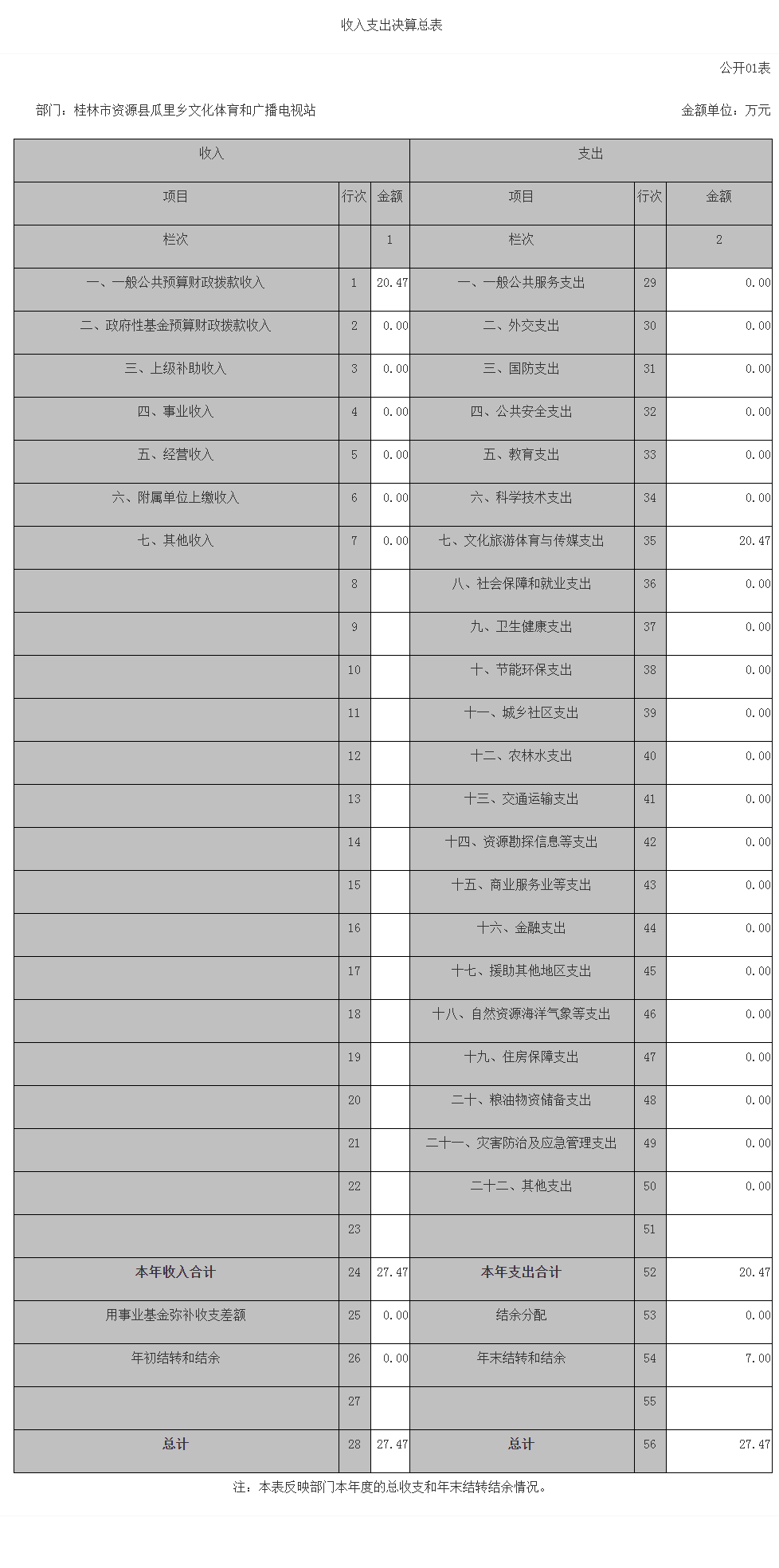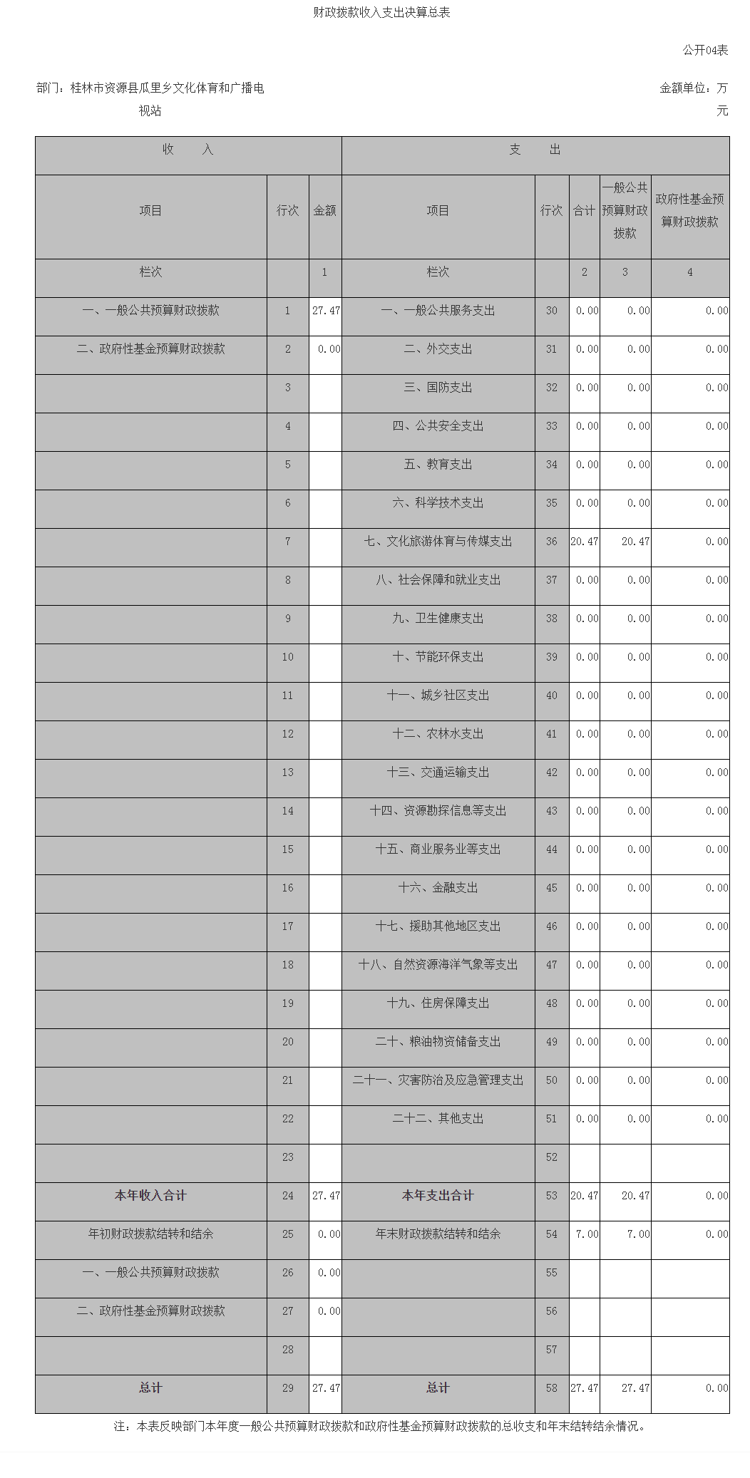 桂林市资源县瓜里乡文化体育和广播电视站2019年度部门决算