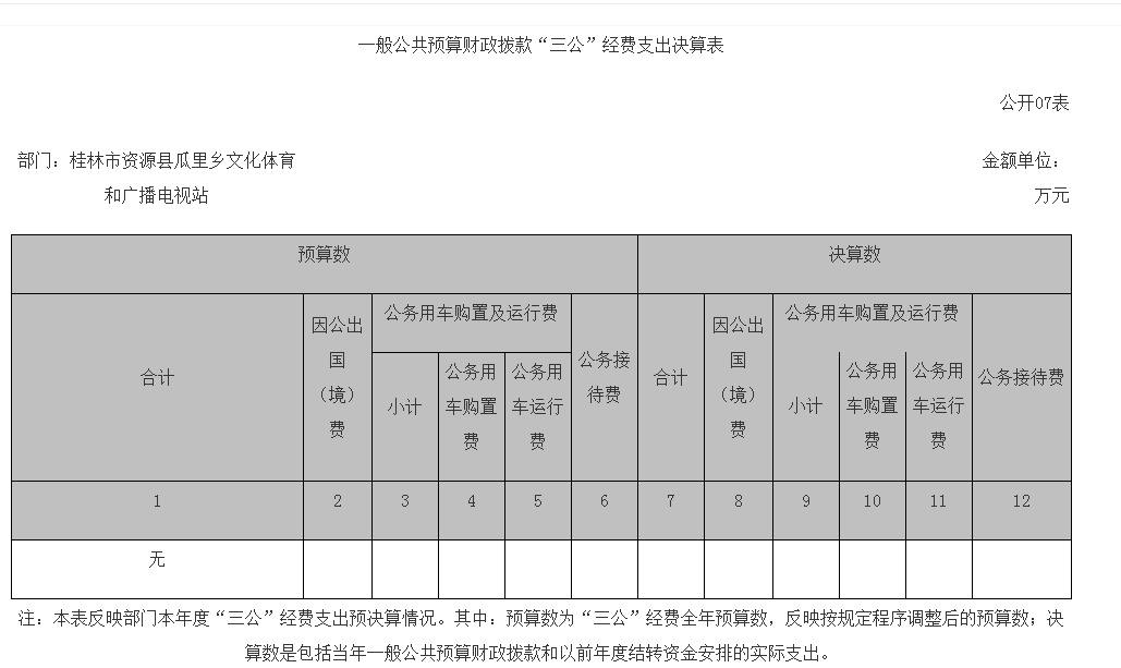二、部门决算单位构成:桂林市资源县瓜里乡文化体育和广播电视站为二层机构。