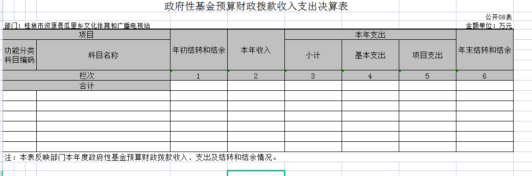 桂林市资源县瓜里乡文化体育和广播电视站没有政府性基金收入,也没有政府性基金安排的支出,故本表无数据。