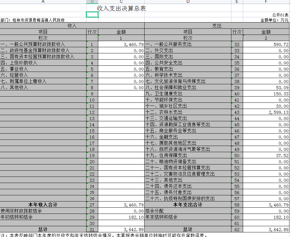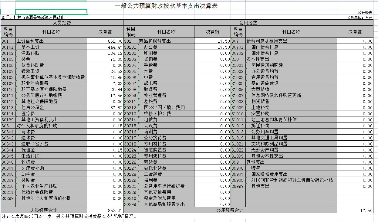 第二部分:资源县梅溪镇政府2020年度部门决算报表