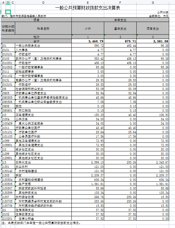 资源县梅溪镇政府2020年度一般公共预算支出3460.79万元,较减少1019.07万元,减少22.75%。其中:基本支出879.71万元,项目支出2581.08万元。