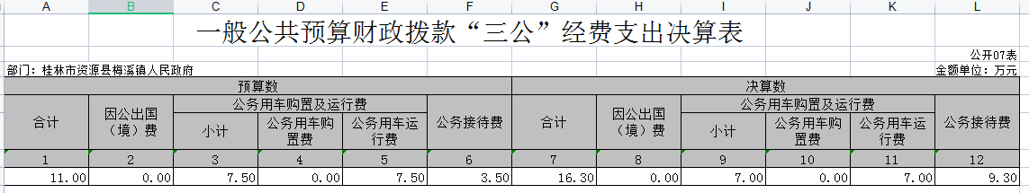 公务用车运行支出7万元。主要用于机要文件交换、市内因公出行以及开展业务所需车辆燃料费、维修费、过路过桥费、保险费等。2020年,资源县梅溪镇政府1个所属单位开支财政拨款的公务用车保有量为3辆,全年运行费支出7万元,平均每辆2.33万元。