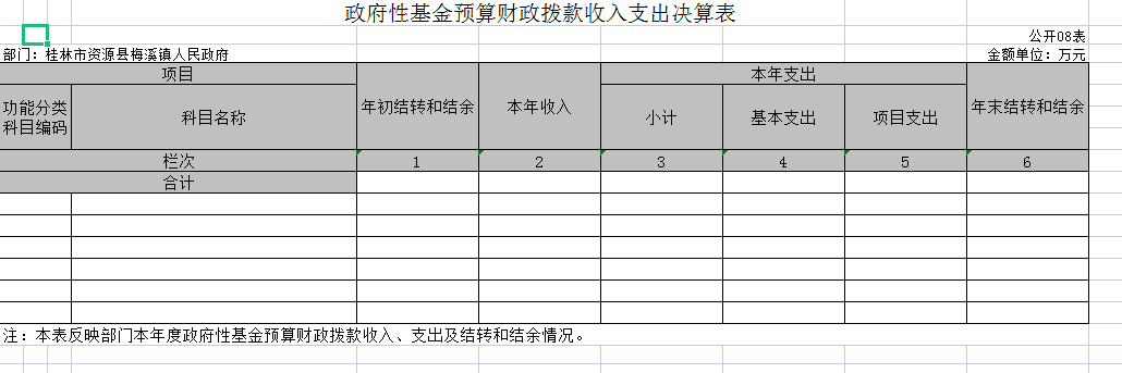 资源县梅溪镇政府2020年度政府性基金支出年初预算为0万元,支出决算为0万元,完成年初预算的0%。