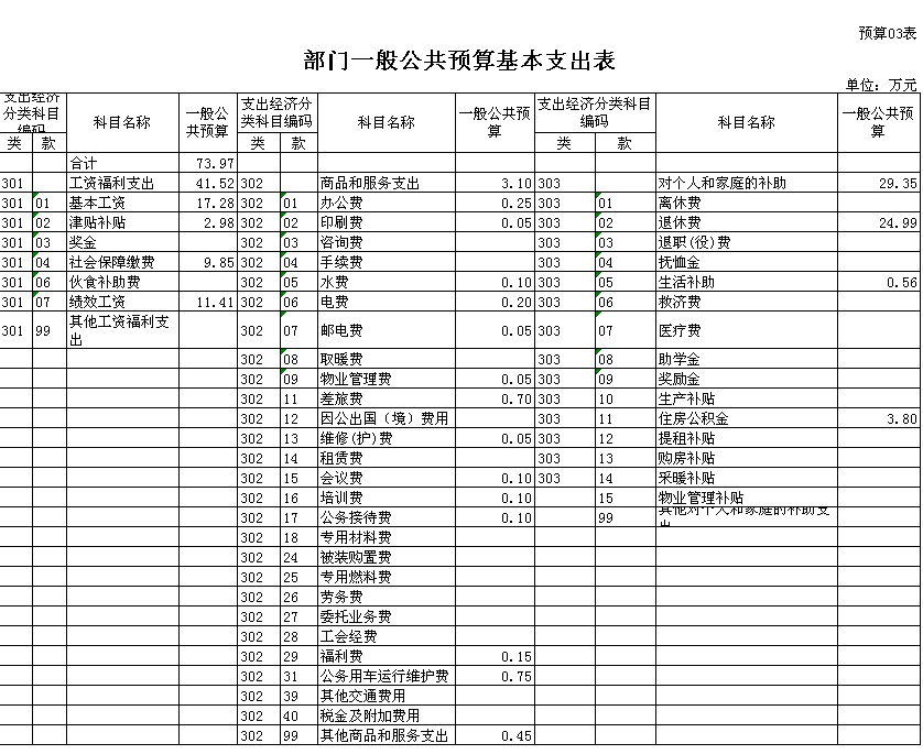 三、一般公共预算基本支出表