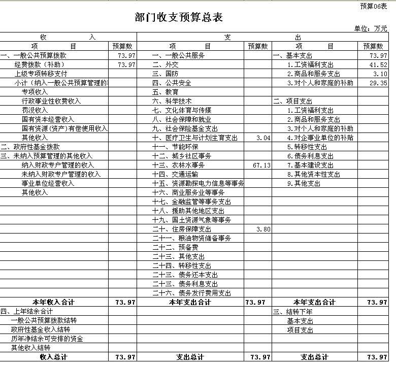 六、部门收支总表