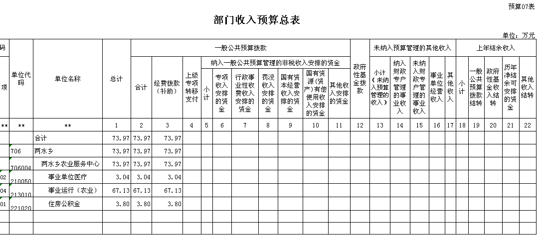 七、部门收入总表