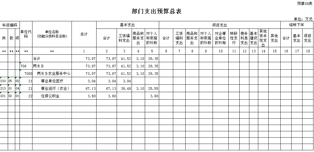 八、部门支出总表