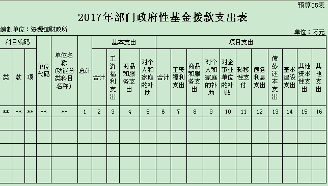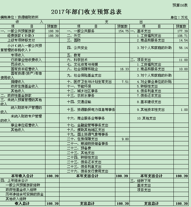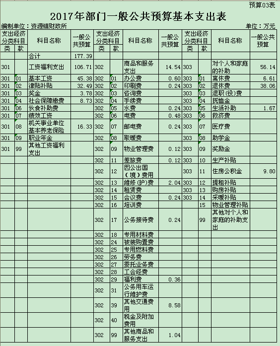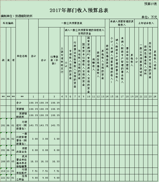 资源县资源镇人民政府2017年部门预算