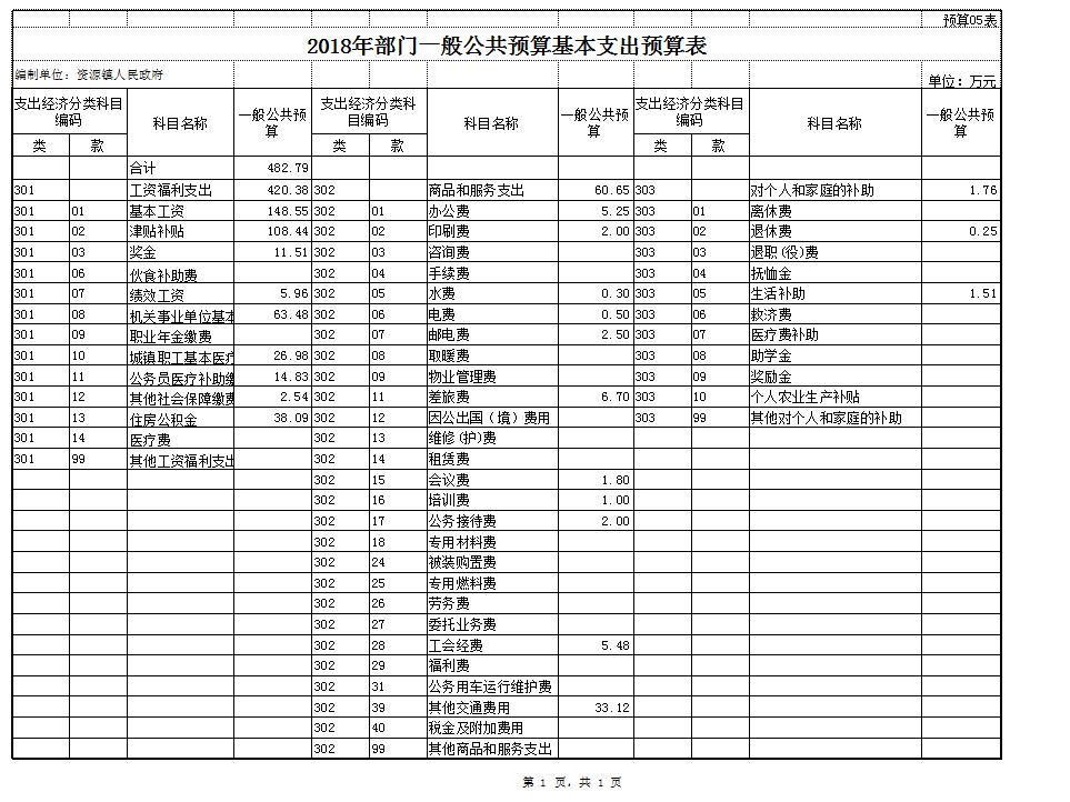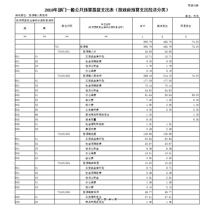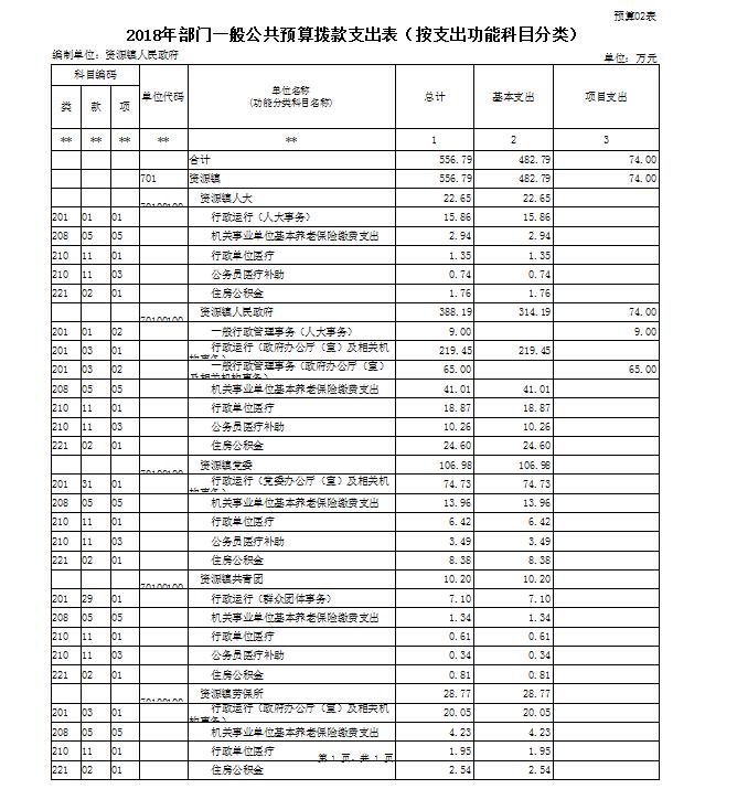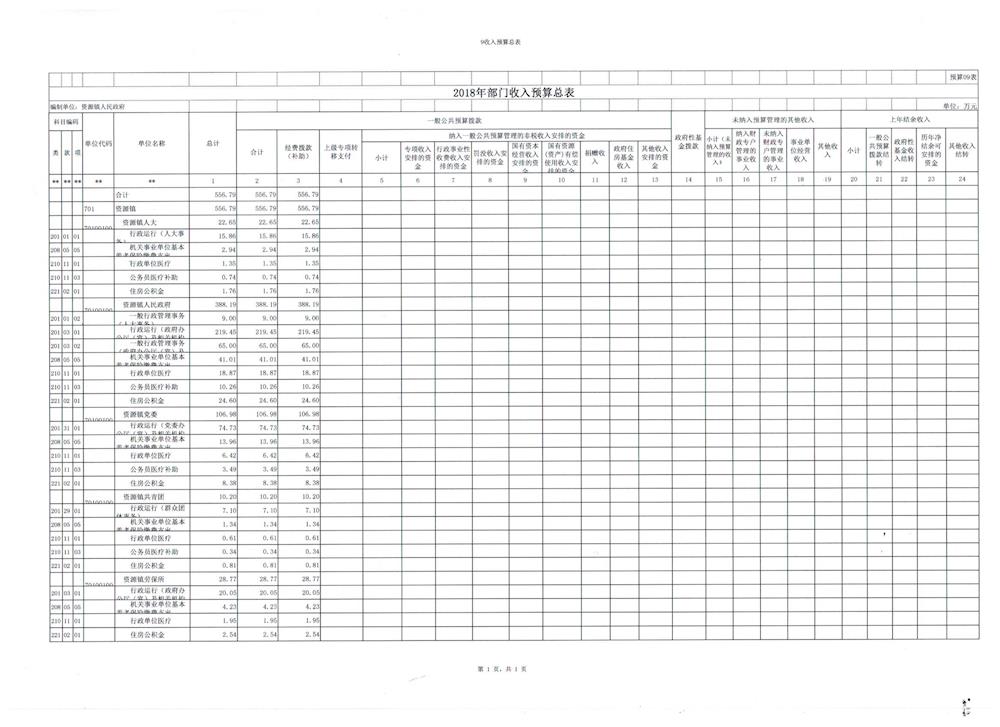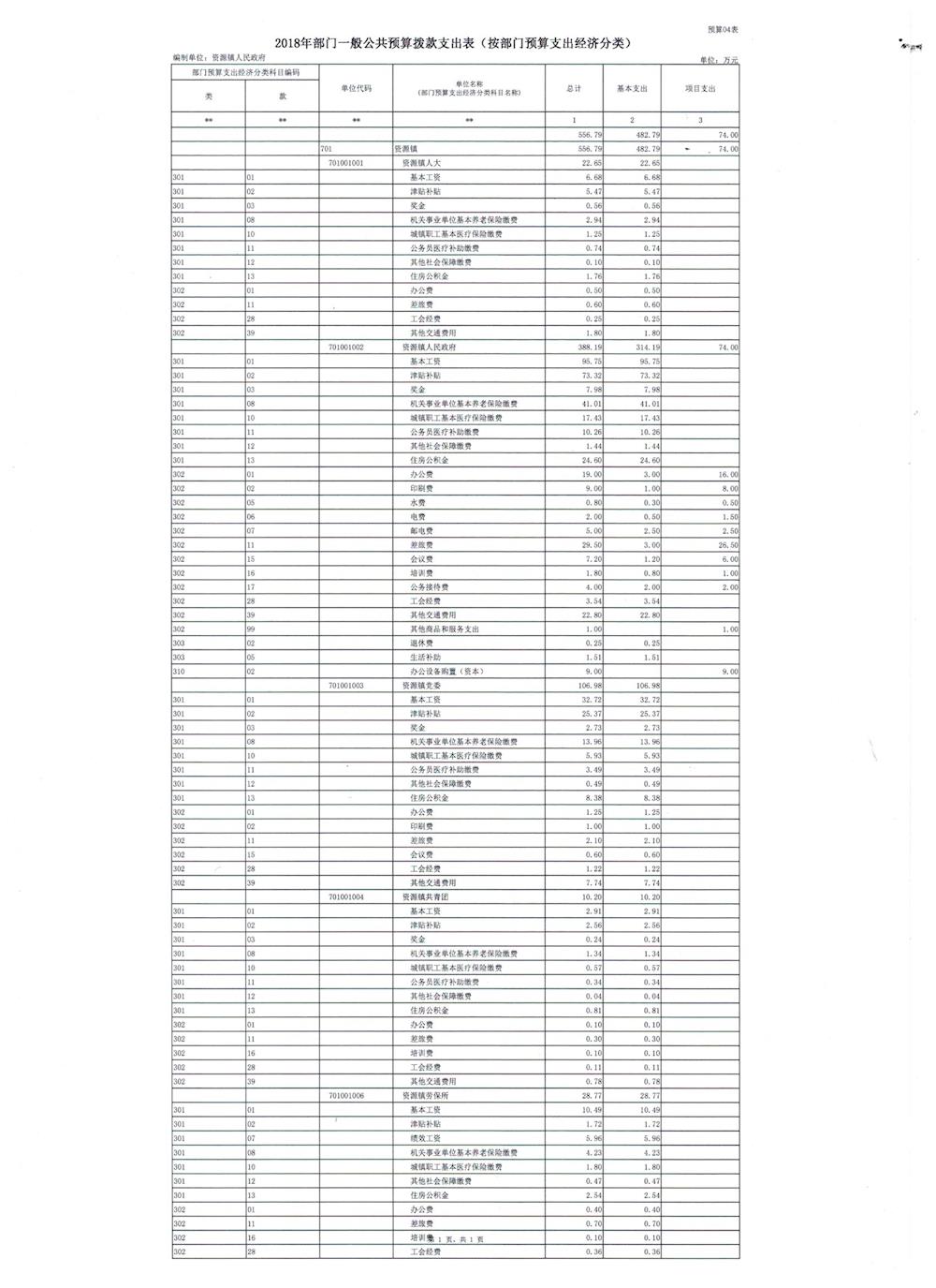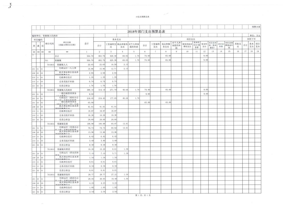 资源县资源镇人民政府2018年部门预算
