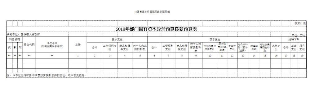 11国有资本经营预算拨款预算表